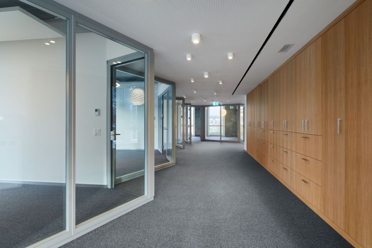 Empfang- und Wartebereich, Kundenoffice, 7 Beratungsbüros, Backoffice, Aufenthaltsraum und Multifunktionsraum.