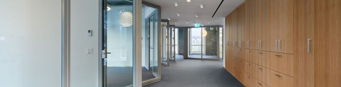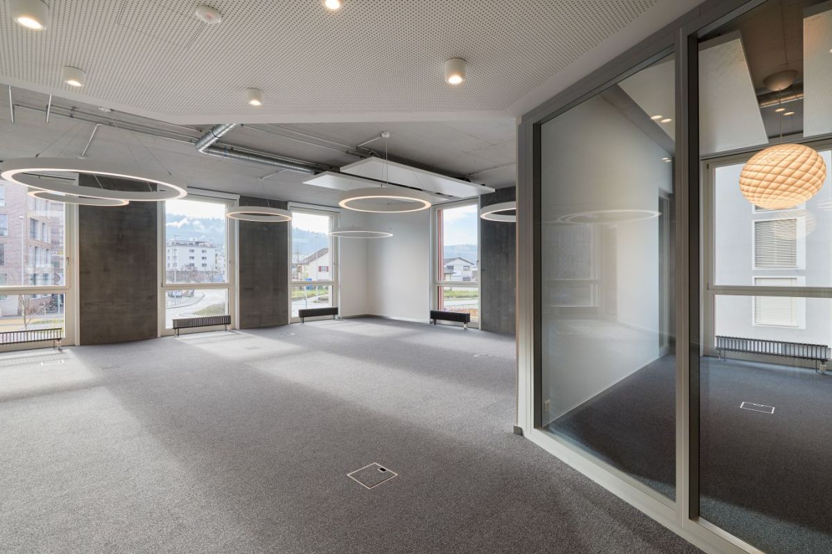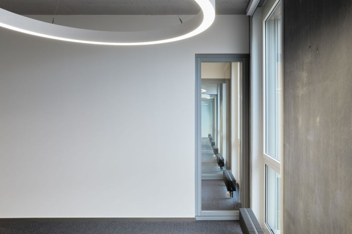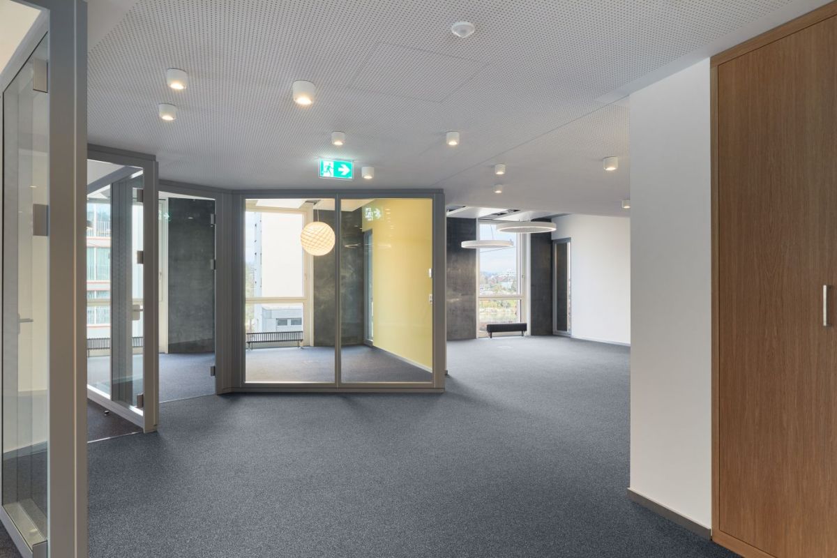 An der Baslerstrasse 10 in Rheinfelden im 1. Obergeschoss West entstand ein Mieterspezifischer Büroausbau für die Beratungsdienste ask!. Die Aufgabe war, Beratungs- und Mitarbeiterbüros zu realisieren sowie einen Multifunktionsraum, der auch unabhängig von den Büros funktioniert. Der Ausbau sollte auf keinen Fall den Charakter einer „Behörde“ haben, er sollte lichtdurchflutet und wohnlich wirken. Mit den schräg zum Korridor stehenden Glaswänden fällt das Tageslicht bis in die Mittelzone und auch die Korridorsituation wird dadurch ausgeweitet. Damit es im Sommer nicht all zu warm wird, wurden auf der ganzen Fläche Deckenkühlsegel angebracht. Die spezielle Beleuchtung der einzelnen Räume und dezenten Farbakzente runden den Ausbau ab.